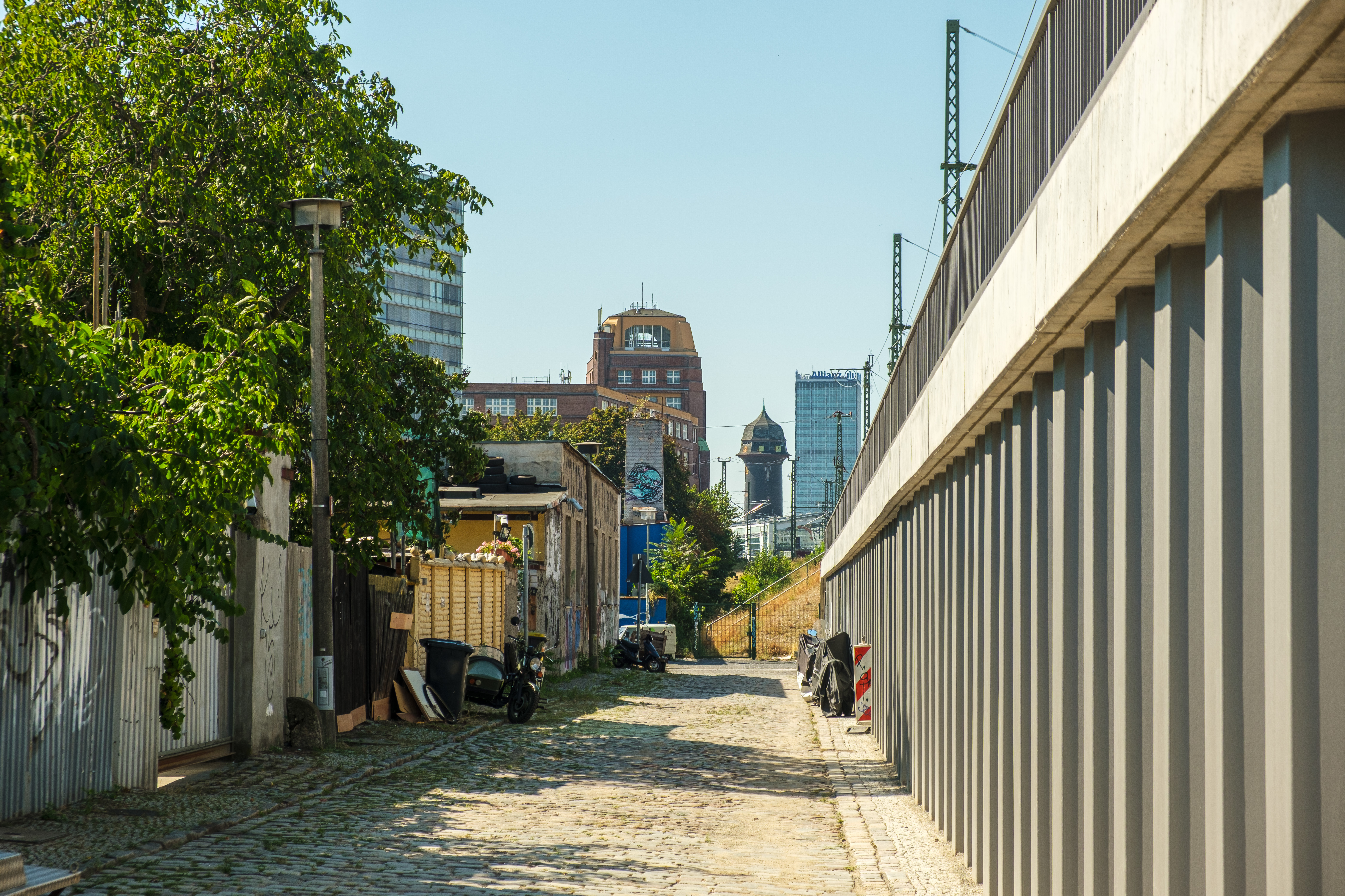 hinten: frühere Knorr-Bremse, Wasserturm am Ostkreuz, Treptower | |